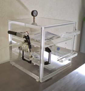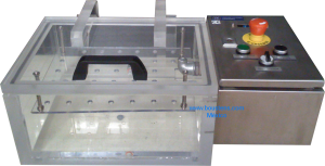 Platillo en acero inoxidable, cabina corta aire, fondo en acero inoxidable. cubierta de protección, cable de poder.